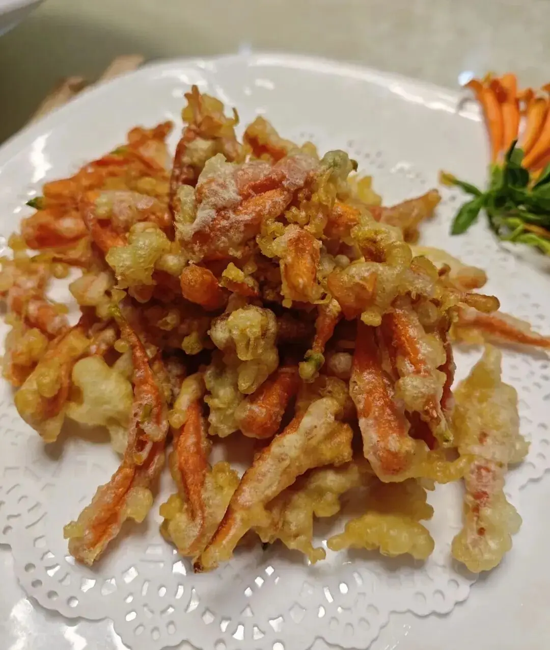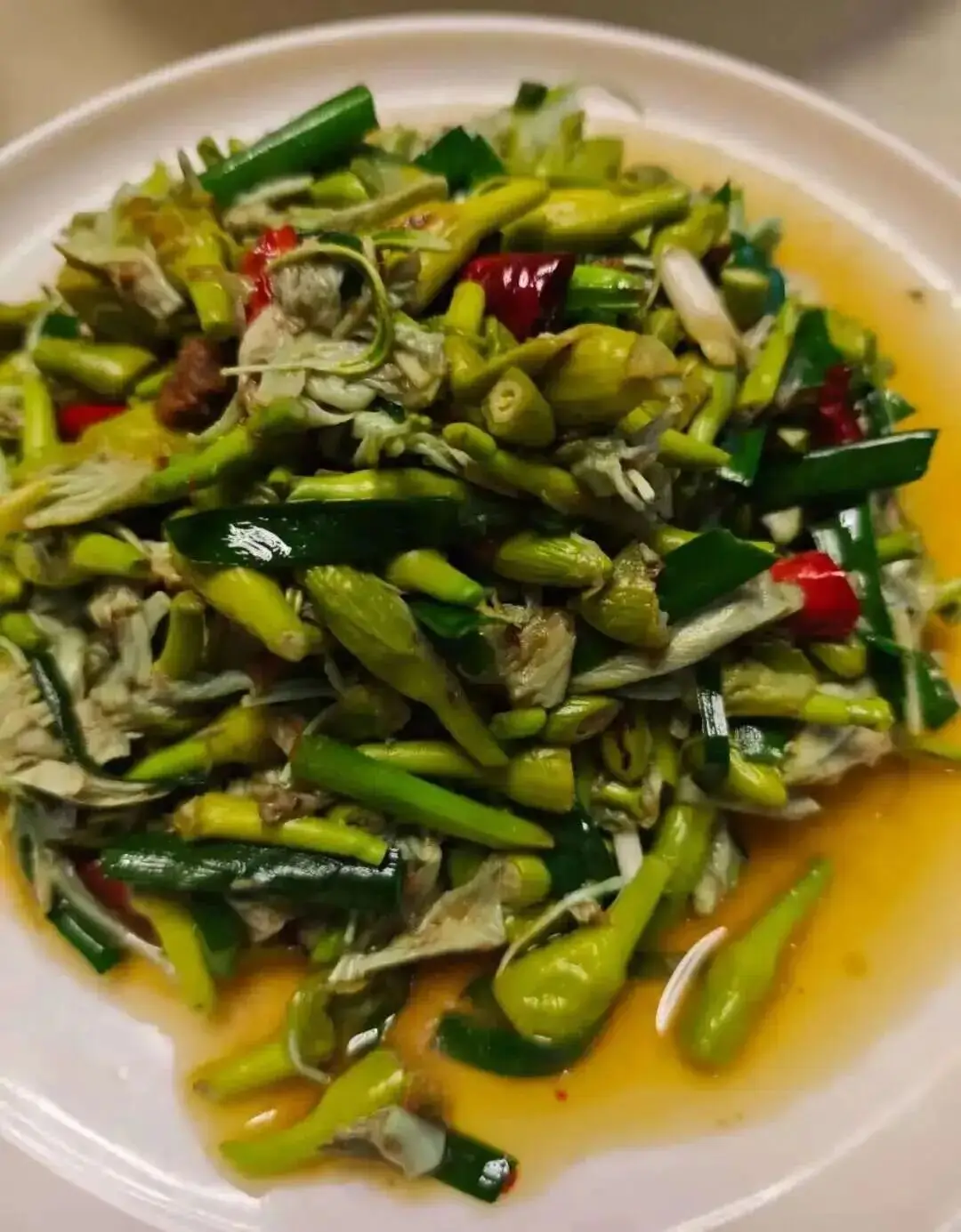 金雀花煎蛋:花香清润,蛋香浓郁; - 菠萝蜜炒牛肉:果香裹肉香,滑嫩鲜甜; - 芒果炒咸鸭蛋:咸鲜酸甜,开胃解腻; - 攀枝花芯、芭蕉花小炒:脆嫩爽口,满是山野清气。