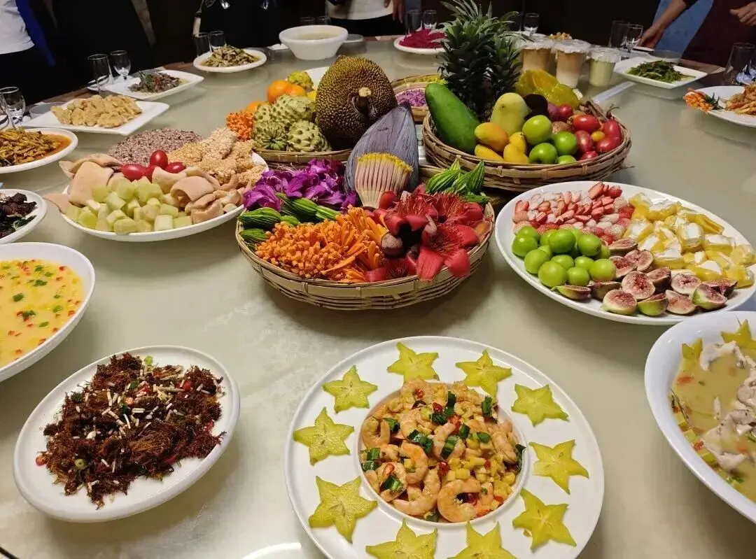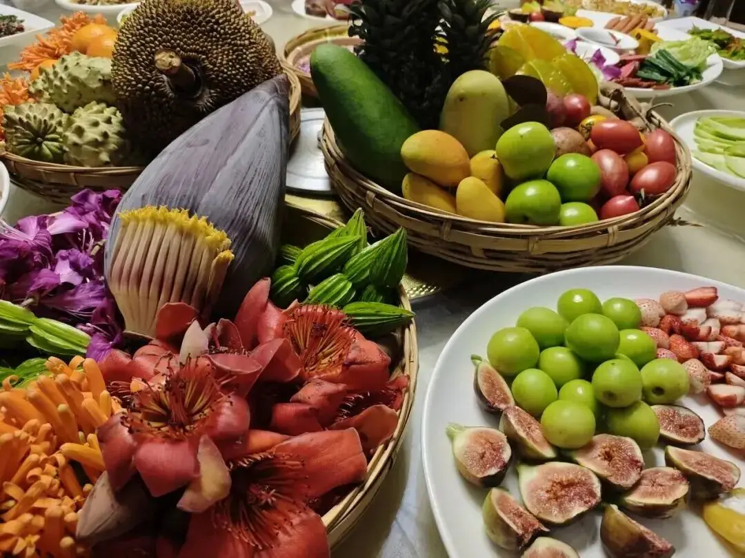 元江四季花果不绝,当地人把这份天赋,做成了惊艳味蕾的花果宴。 鲜花入菜、鲜果入馔,每一道都是视觉与味觉的双重惊喜: