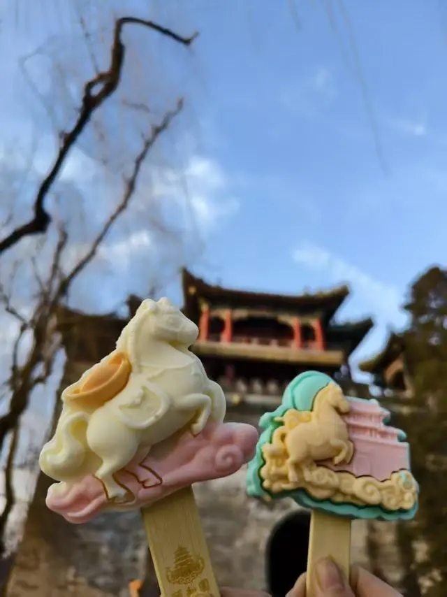 为做好春节假期游园服务保障,在颐和园游客服务中心暖心驿站,不仅提供热水、应急药品,还专门优化“一老一小”服务,工作人员热情地为老人递上热茶,为小朋友送上新春福字贴纸,现场暖意融融。 在颐和园文创店,一款以“特”为原型的文创雪糕成为游客争相打卡的“新宠”。这款名为“特可爱”与“特有才”的雪糕,造型呆萌、寓意吉祥,孩子们拿着雪糕在红灯笼下合影,笑容比阳光还灿烂。一旁的文创货架上,毛绒玩偶“颐和灵骏——万里特”也吸引了不少目光,粉色的鬃毛搭配圆润的身形,寓意“马到成功”,不少游客将其作为新年礼物带回家。