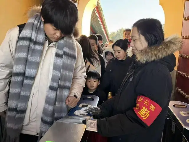 暖心服务更添节日温情。全园温水洗手、游客中心热水供应不间断,卫生间保暖门帘、闸机保暖护套抵御寒意,扫码讲解服务让游客的排队时光也能了解特色文化,不少游客点赞“冷天里的小细节超贴心”。天坛用细节与巧思,让市民游客在沉浸式体验中欢度新春佳节。