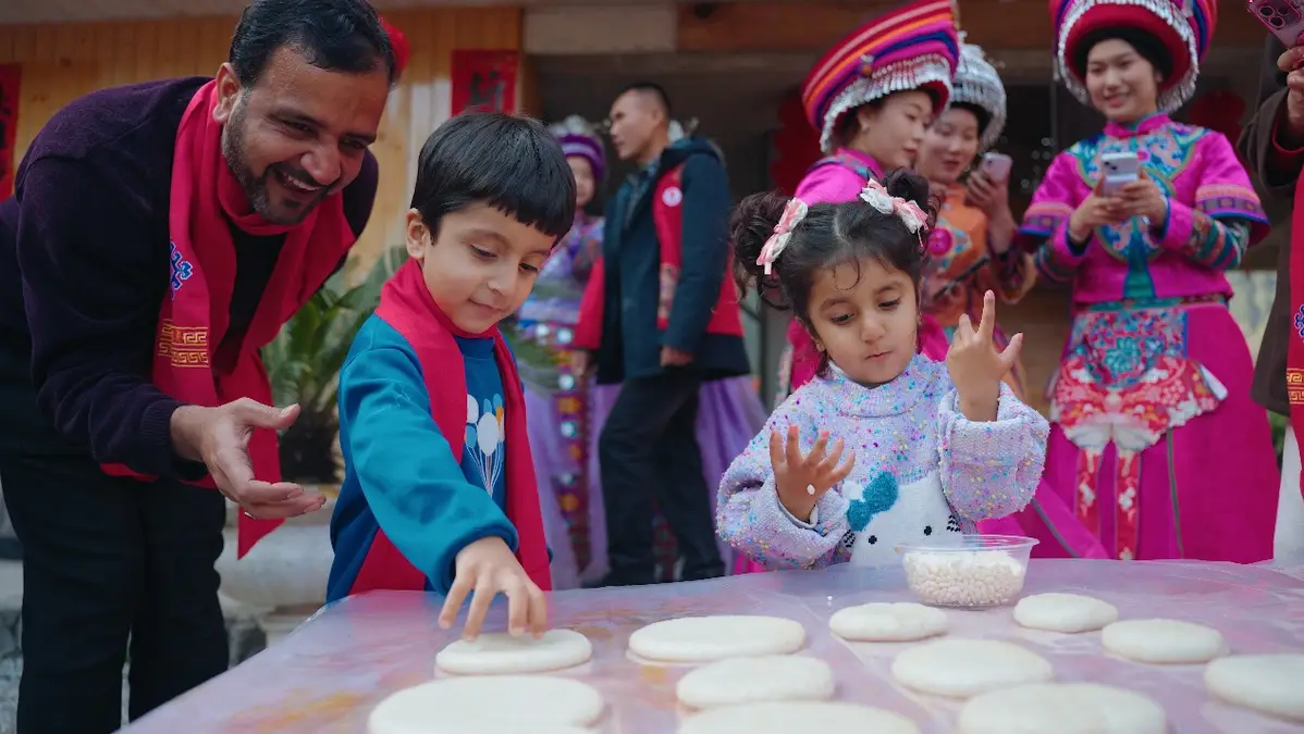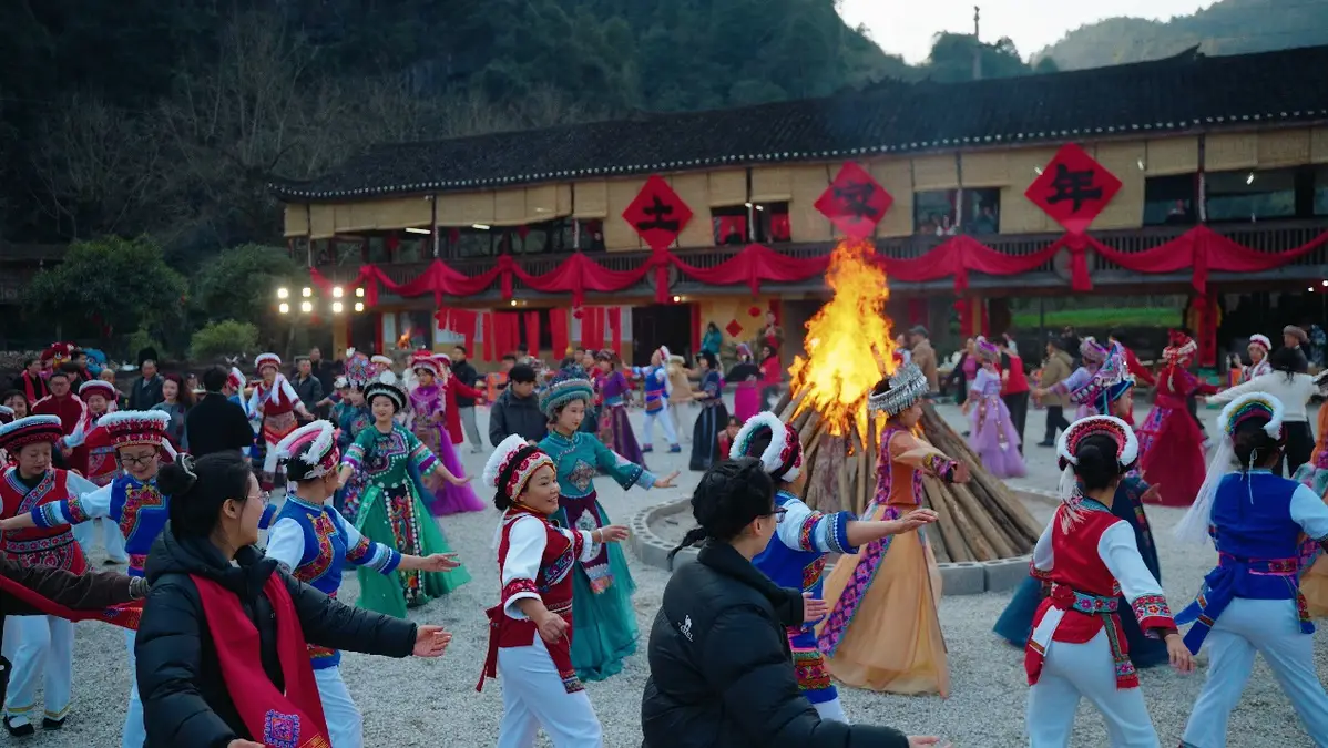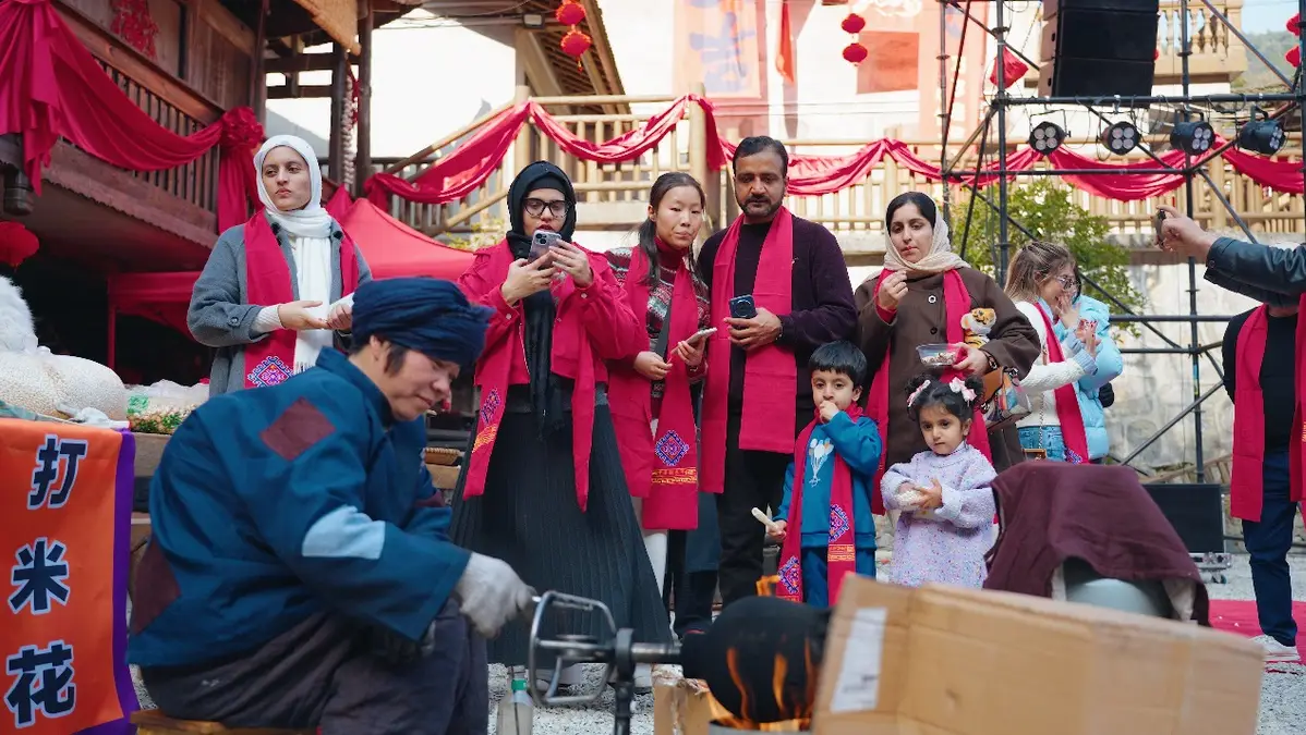 腊月时节,“中国民歌之乡”张家界桑植县山歌寨张灯结彩,一场融汇传统民俗与国际风情的"团年饭"热闹开席。来自湖北、广州及委内瑞拉、巴基斯坦等地的中外游客齐聚于此,共品土家年味。