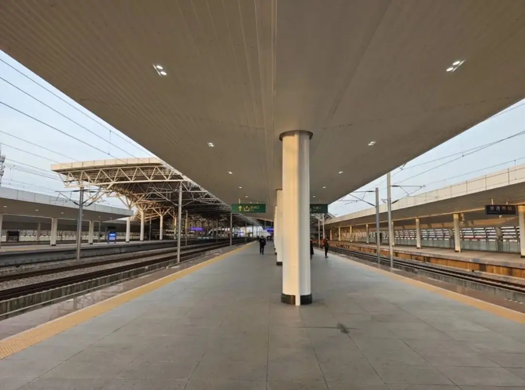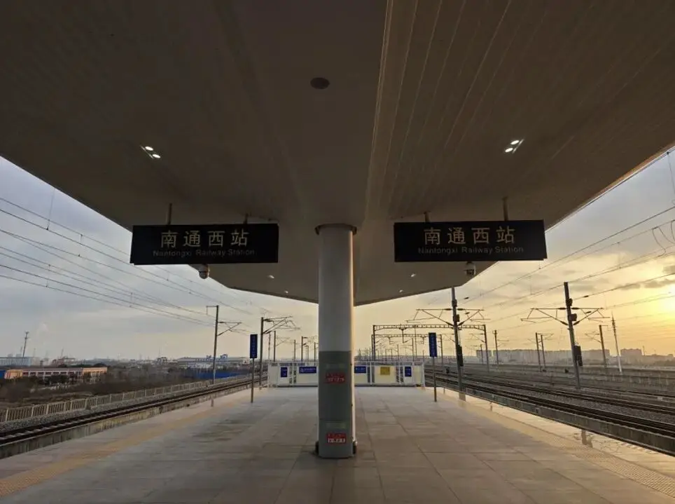 金光洒进车站,日轮西沉映铁轨,落日余辉染车窗。 央视新闻网友@央视迷弟小焘焘