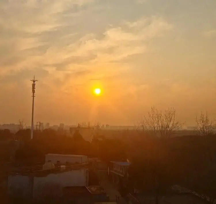 列车的车轮碾过钢轨,发出有节奏的轰鸣,而窗外的风景,是我的铁路生涯里最温柔的注脚。 清晨,当第一缕阳光刺破薄雾,我透过车窗,看见一轮红日正从光秃秃的枝桠间缓缓升起。那些没有叶子的树木,在金色的光晕里只剩下简洁的线条,像是水墨画里的留白。远处的电线杆被疾驰的列车拉成了模糊的光带,与天边的橙红交织在一起,构成了一幅流动的画。这是我无数次值乘中,最熟悉也最动人的开场。 有时,车厢里的一束假花会闯入镜头。它的色彩在朦胧的晨光里显得格外鲜艳,与窗外那轮小小的太阳形成了奇妙的呼应。一边是人造的、静止的美,一边是自然的、流动的光,它们在车窗玻璃上短暂相遇,又迅速分离,就像我在旅途中遇到的每一个人,每一段故事。 更多的时候,我会在宿舍的窗前,静静凝视这片属于铁路的天空。夕阳把天空染成温暖的橘色,通信塔的剪影在霞光里显得格外挺拔。远处的城市轮廓在薄雾中若隐若现,近处的屋顶和围墙则被镀上了一层金边。我知道,这轮太阳落下后,又会在另一个清晨,在另一段铁轨的尽头,重新升起。 这些风景,没有名山大川的壮阔,却有一种独特的、属于铁路人的诗意。它们是我在漫长旅途中的陪伴,是我在平凡岗位上的慰藉,也是我与这片土地最深刻的联结。每一次日出,每一次日落,都在提醒我:我们不仅是风景的过客,更是这流动画卷的一部分,在疾驰中,与光相遇,与远方相拥。 心向家的方向 央视新闻网友@p63z8i