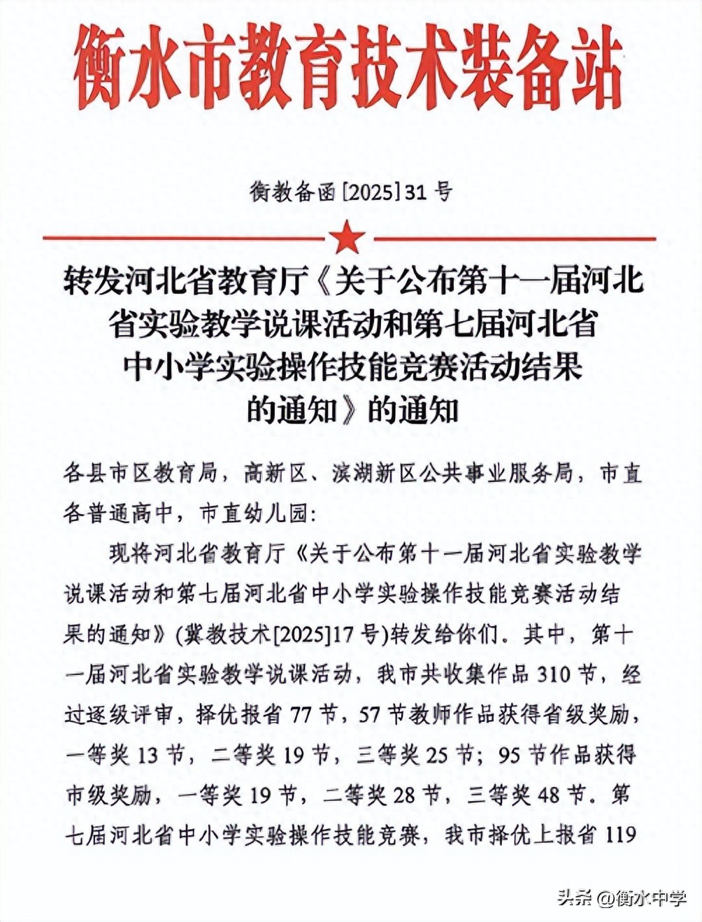近日,第七届河北省中小学实验操作技能竞赛圆满落下帷幕,该竞赛是由河北省教育厅主办的。作为全省基础教育领域里实验教学成果的重要展示平台,本次竞赛有着“科技启航,智创未来”这样的核心理念,它创新引入了AI智慧考评系统,通过线上知识考核以及线下实操比拼相结合的方式,全方位检验参赛选手的科学素养和实践能力。![]() ![]() 这次竞赛,规模十分宏大,全省11个市,以及定州、辛集、雄安新区的1600余名师生,都被吸引过来,一同参与竞技。竞赛呢,严格按照《中小学实验教学基本目录》进行,考察基础实验技能,更着重检验学生对于实验原理的深度理解,对操作细节进行精准把控,并具备突发问题的应变能力。 ![]() 我校那些参加比赛的学子们处于备赛时期,依靠学校完备的实验教学体系,先是对实验方案进行反复地精心打磨,接着对操作流程进行精准地优化,然后在数据记录方面做到严谨规范,随后对实验报告进行逻辑上的梳理,在指导教师的用心引领下,这些同学们持续锻炼实践能力、加深科学认知。在比赛场地,他们表现得沉着且冷静,操作也十分熟练,既精确地完成了规定的实验流程,又在细节处理当中融入了创新的思考。不管是配制一定物质的量浓度的溶液,还是进行酸碱中和滴定,这些同学们都达成了操作规范、逻辑清晰、记录严谨的要求。他所具备的娴熟技能,和严谨的科学那态度,赢得了评委组给予的高度认可,最终且斩获三项省级一等奖,还有一项省级二等奖,彰显出我校在实验教学领域的那种育人成效。 助力培育创新人才的重要途径是实验教学,赋予学生全面发展能量的关键载体也是它,我校一直把它摆在教学工作显眼重要之处。2022年12月,学校对实验室全程进行全面装修使之升级,不仅优化了实验教学所处环境,还引进了一批先进的实验仪器,并且与此同时同步完成了原有设备的更新迭代工作。目前的状况是,我校演示实验、分组实验开出率都达到了100%,并且是在这个基础之上进一步增设多项拓展性、探究性实验,全力以赴去保障教学所需。同一时间,学校借助开设实验选修课这种方式,去激发学生内心对于科学的好奇心理以及探究欲望,引领学生于动手实践这个过程当中,磨炼创新精神、提高核心素养,使得实验教学切实成为助力学子成长的那种坚实平台。 |