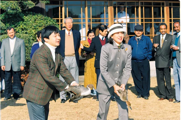 然而,在这些鸭子与皇室的深厚缘分中,最值得大书特书的,莫过于鸭场曾是德仁天皇向雅子皇后求婚的舞台这一著名插曲。1992年8月16日,当时还是皇太子的德仁天皇与雅子重逢。此前,雅子因外务省的外派研修留学项目在英国牛津大学贝利奥尔学院学习,两人已暌违五年。 求婚的舞台 两人重逢的地点选在了前外务事务次官柳谷谦介的宅邸,柳谷氏是雅子父亲小和田恒在外务省的前辈。受时任宫内厅长官藤森昭一之托,柳谷氏提供了位于距离皇居不远的东京都千代田区五番町的私宅,作为两人的“幽会之所”。 德仁天皇与雅子一边喝茶一边互诉近况,并在此定下了约会承诺,地点选在了人迹罕至的新滨鸭场。10月3日清晨,趁着在位的上皇与上皇后夫妇前往山形县出席国民体育大会(现国民体育节)开幕式之际,德仁天皇微服造访鸭场。在与雅子共进午餐后,天皇发出了“你愿意嫁给我吗”的求婚誓言。 当时已在外务省崭露头角的雅子经过深思熟虑,于12月12日下定决心结婚。同年12月25日圣诞节当天,德仁天皇携雅子在御所拜见上皇夫妇,婚约由此内定。