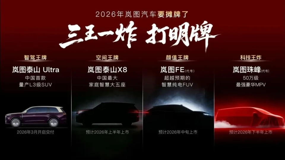 兄弟们,没想到,2026年这才刚到没一个月,岚图汽车就不装了,彻底摊牌了。看样子,2026年车市的竞争只会比2025年还激烈,那东风岚图在2026年又将会上市哪些与众不同的新车型呢?今天我们就一起来了解下。
