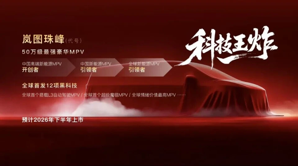 产品力方面,厂家称岚图珠峰是50万级最强豪华MPV,而且是不带引号的那种,看样子,岚图高层对这车的信心很足啊,难道又要复刻一波梦想家的辉煌?技术的话,新车将会全球首发12项黑科技,具体的有:全球首个搭载L3级自动驾驶MPV、全球首发超级魔毯MPV、全球情绪价值最高MPV等等。上市时间则预计是会在2026年的下半年,想买高端MPV但又不差钱的朋友不妨等一等它,顺便看看它和智界R9到底谁更好更强?