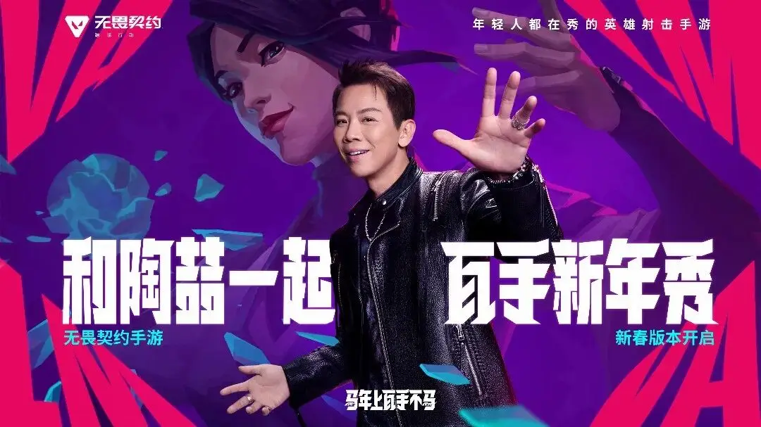 瓦手LOGO翻转后神似陶喆的发型 双方甚至还围绕马年与FPS玩家自嘲梗打造的《马年上瓦手不马》开黑神曲,旋律魔性上口,直接成为玩家春节开黑的专属“颗秒进行曲”。
